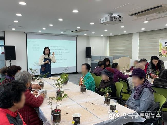 이날 행사에는 관내 어르신 약 15명이 참여하여 각자 자신만의 테라리움을 만드는 시간을 가졌다.