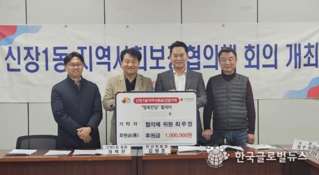 (한국글로벌뉴스 - 박소연 기자) 오산시 신장1동은 지난 18일 신장1동 지역사회보장협의체 최우정 위원이 지역사회 복지 발전을 위한 이웃돕기 후원금 100만 원을 기탁했다고 밝혔다.