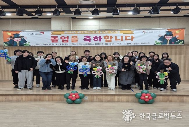 (한국글로벌뉴스 - 박소연 기자) 오산세교종합사회복지관은 12월 21일 지난 2018년부터 7년간 함께 해온 월드비전 꿈디자이너사업 꿈꾸는 아이들 프로그램 종결을 맞아 졸업식을 진행했다.