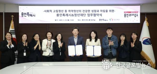 (한국글로벌뉴스 - 박소연 기자) 용인특례시는 지난 24일 재단법인 청년재단과 ‘사회적 고립청년 등 취약청년 지원을 위한 업무협약’을 체결했다고 25일 밝혔다.