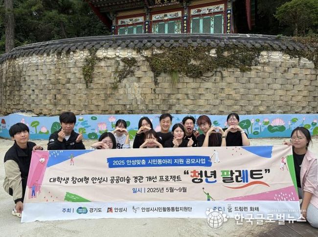 (한국글로벌뉴스 - 박소연 기자) 안성시자원봉사센터 소속 대학생 봉사단 ‘드림런 화채(花彩)’가 지난 9월 27일과 10월 4일 이틀간 안성시 보개면 영평사에서 제2차 벽화 봉사활동을 진행했다.