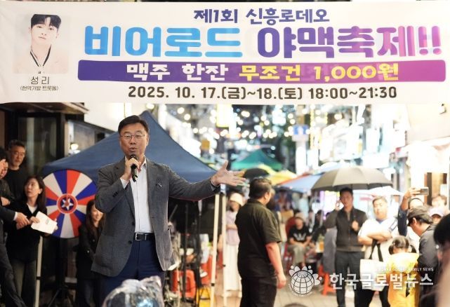 (한국글로벌뉴스 - 박소연 기자) 신상진 성남시장은 17일 저녁 신흥로데오거리 종합시장 먹자골목에서 열린 ‘제1회 신흥로데오 비어로드 야맥축제’ 개막식에 참석해 관계자들을 격려하고 시민들과 소통했다.