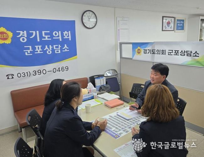 (한국글로벌뉴스 - 박소연 기자) 경기도의회 교육기획위원회 성기황 의원(더불어민주당, 군포2)은 30일, 경기도의회 군포상담소에서 학부모폴리스 관계자들을 만나 활동 현장의 어려움을 청취하고 지원 확대 방안을 논의했다.