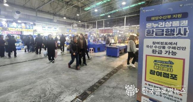 이번 행사는 수산물 소비촉진과 도매시장 활성화를 위해 해양수산부 지원으로 지난 추석 명절에 이어 두 번째로 개최됐다. 수산동 26개 점포가 참여한 이번 행사는 국내산 수산물 구매 시, 구매 금액의 최대 30%(1인 2만원 한도 내)를 온누리상품권으로 환급하는 혜택을 선보였다.
