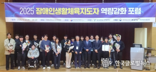 (한국글로벌뉴스 -박소연 기자) 경기도장애인체육회(회장: 김동연 경기도지사)는 2025. 11. 27.(목) 이천동원리더스아카데미에서 대한장애인체육회가 주최하고 용인대학교 산학협력단이 주관하는 ″2025 장애인생활체육지도자 역량강화 포럼″이 열렸으며, 이 자리에서 우수지도자 시상식이 함께 진행됐다고 밝혔다.