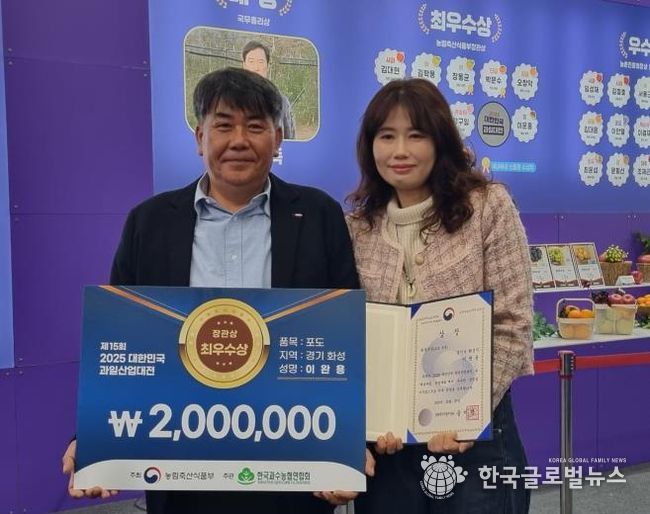 (한국글로벌뉴스 - 박소연 기자) 화성특례시가 농림축산식품부와 한국과수농협연합회가 주최·주관한 녩년 대한민국 대표과일 선발대회’에서 ‘포도 분야 최우수상’을 수상했다고 28일 밝혔다.