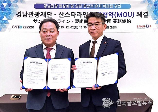 (한국글로벌뉴스 - 김정현 기자) 경남관광재단은 12월 2일 창원컨벤션센터에서 팬스타그룹 일본 현지법인인 ‘산스타라인(SANSTAR LINE)’과 ‘경남 관광 활성화 및 일본 관광객 유치 확대’를 위한 업무협약(MOU)을 체결했다고 밝혔다.