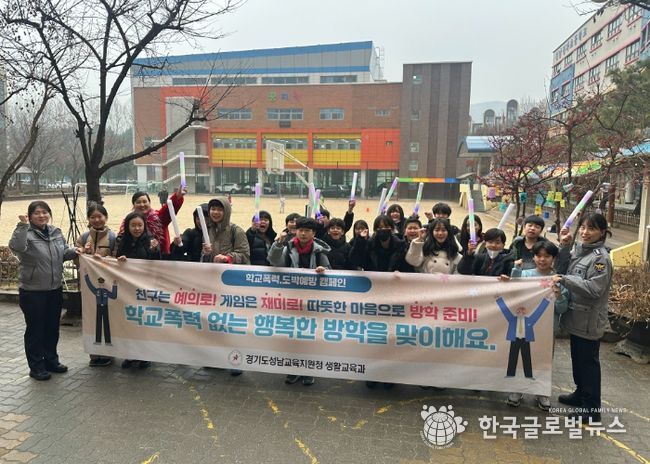 (한국글로벌뉴스 - 박소연 기자) 경기도성남교육지원청은 2025년 12월 16일(화) 성남정자초등학교 정문 및 4층 AI융합실에서 '2025 성남 학교폭력 예방 활동 성과공유회 및 학교폭력·학생도박예방 연합캠페인'을 개최했다.