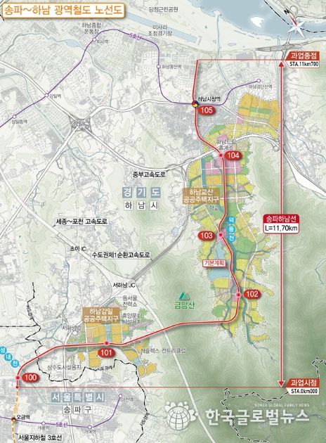 (한국글로벌뉴스 - 박소연 기자) 경기도는 송파하남선 광역철도 건설사업의 도 시행 구간인 2‧3‧4공구의 일괄입찰 공사 사업자 선정을 위한 입찰을 공고했다고 23일 밝혔다.