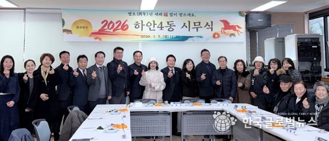 (한국글로벌뉴스 - 박소연 기자) 광명시 하안4동 행정복지센터는 지난 5일 센터 2층 회의실에서 2026년 병오년(丙午年) 새해를 맞아 유관단체장과 마을연대활동가 등 30여 명이 참석한 가운데 시무식을 열었다.