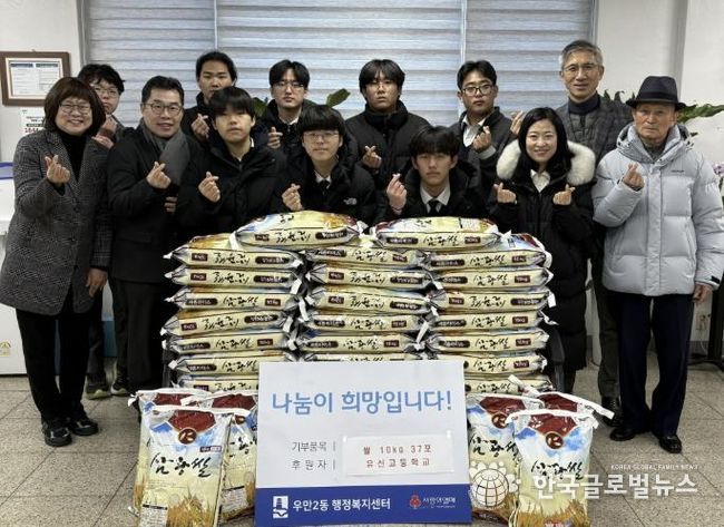 (한국글로벌뉴스 - 박소연 기자) 지난 1월 8일, 유신고등학교 학생회에서는 따뜻한 마음을 담아 백미 10Kg 37포를 수원시 팔달구 우만2동에 전달했다고 밝혔다.