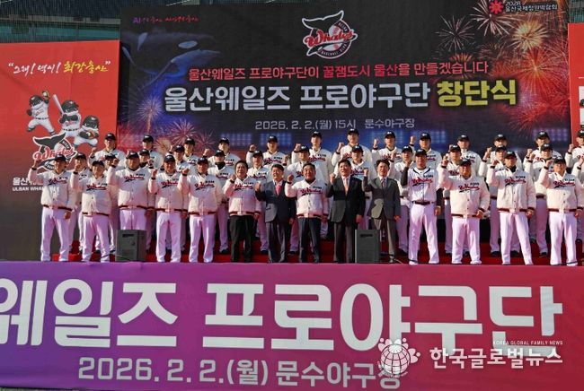 (한국글로벌뉴스 - 박지형 기자) 울산광역시(시장 김두겸)는 2월 2일(월) 울산 문수야구장에서 '울산 웨일즈' 공식 창단식을 개최했다.