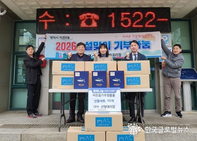(한국글로벌뉴스 - 박소연 기자) 기아 신평대리점은 10일 설 명절을 맞아 평택시 비전2동 행정복지센터에 지역 내 취약계층을 위한 명절 선물 세트 75박스를 기부했다.