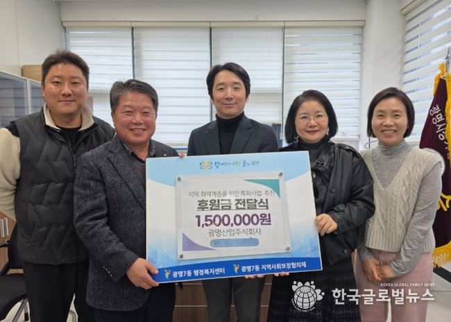 (한국글로벌뉴스 - 박소연 기자) 광명산업은 11일 지역사회 나눔 실천의 일환으로 광명7동 지역사회보장협의체에 취약계층 복지 증진을 위한 후원금 150만 원을 기부했다.