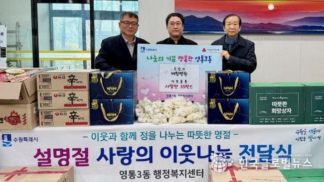 김인태 영통3동장은 “설 명절을 맞아 관내 취약계층을 위한 후원에 감사드리며, 기탁된 물품은 어려운 이웃에게 잘 전달하겠다”고 전했다.
