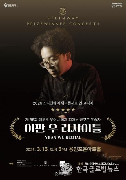 (한국글로벌뉴스 - 박소연 기자) 용인문화재단은 오는 3월 15일 오후 5시, 용인포은아트홀에서 ‘2026 스타인웨이 위너콘서트 – 이판 우 리사이틀’을 개최한다고 밝혔다.