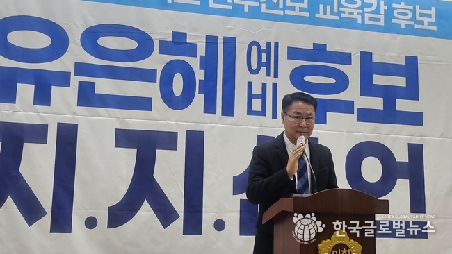 (한국글로벌뉴스 -박소연 기자) 2018년 경기교육혁신연대 민주진보 단일후보였던 송주명 한신대학교 교수가 유은혜 경기도교육감 예비후보에 대한 전격 지지를 선언했다.