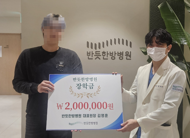 (한국글로벌뉴스 -박소연 기자)12일 오후,수원 호매실동에 위치한 '반듯한방병원(대표원장 김명훈)'에서 (사)경기도장애인복지회 수원시지부(지부장 이종갑)를 통해 장애인 가족 대학생 2명에게 장학금을 전달했다.