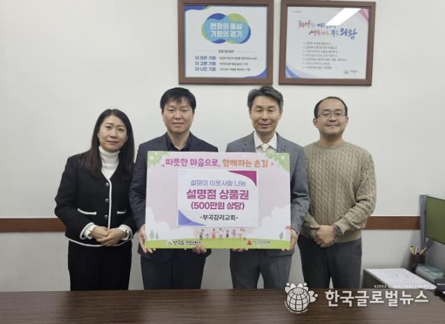 (한국글로벌뉴스 - 박소연 기자) 의왕시 부곡동 부곡감리교회가 2월 12일 설 명절을 맞아 지역 내 어려운 이웃을 돕기 위해 500만원 상당의 상품권을 후원하며 지역사회를 위한 따뜻한 나눔을 실천했다.