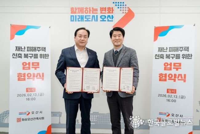 이권재 오산시장은 “재난 피해 주민의 조속한 일상 회복을 위해 주거 안정이 무엇보다 중요하다”며 “이번 협약을 통해 피해주택 복구가 원활히 이뤄질 수 있도록 행정적 지원에 힘쓰겠다”고 말했다.