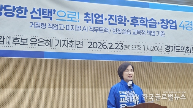 (한국글로벌뉴스 -박소연 기자) 유은혜 경기도교육감 예비후보가 23일 경기도의회 브리핑룸에서 기자회견을 열고 특성화고 체제 전면 개편 구상을 발표했다.