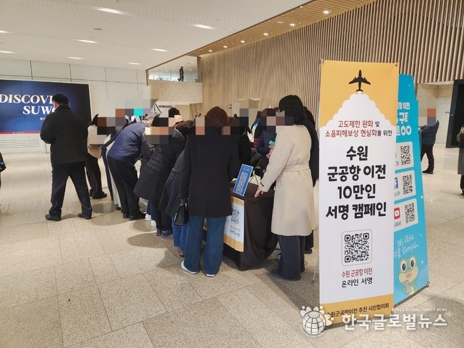 (한국글로벌뉴스 -박소연 기자) 수원군공항이전 및 경기통합국제공항 추진 시민협의회(이하 시민협의회)는 지난 2월 24일(화) 수원 영통구 소재 수원컨벤션센터에서 ‘수원 방문의 해’ 선포식과 연계하여 「수원 군공항 이전 및 경기국제공항 신설 촉구 10만 서명 캠페인」을 전개하였다.