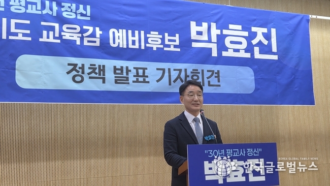 (한국글로벌뉴스 -박소연 기자) 박효진 경기도교육감 예비후보는 11일 경기도의회에서 기자회견을 열고 ‘AI 시대를 주도하는 학생을 키우는 교육정책’을 발표했다.