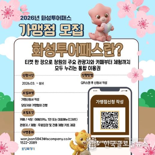 (한국글로벌뉴스 - 김정현 기자) 화성특례시가 관내 주요 관광지를 자유롭게 이용할 수 있는 통합 자유이용권 ‘화성 투어패스’의 신규 가맹점을 상시 모집한다고 12일 밝혔다.