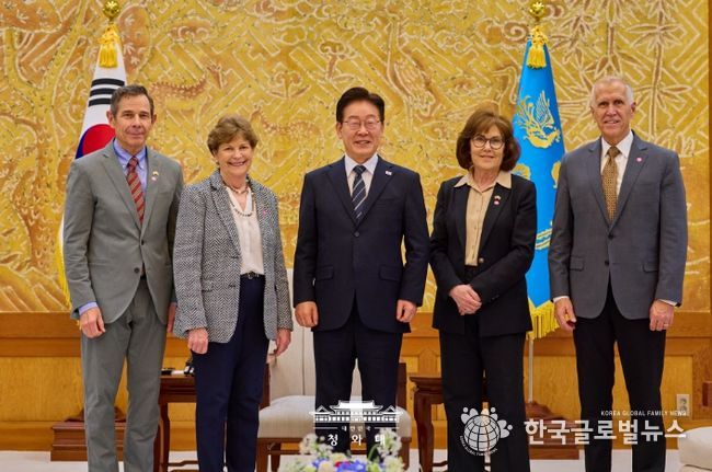 (한국글로벌뉴스 - 박소연 기자) 이재명 대통령은 4월 2일 오후 청와대에서 진 섀힌(Jeanne Shaheen) 상원 외교위원회 간사 등 공화·민주 양당 의원으로 구성된 미국 상원의원 대표단을 접견했다. 이 대통령과 미 대표단은 한미동맹 및 한반도 문제를 비롯해 중동 전쟁의 안보적·경제적 파장과 대응 방안에 대해 심도 있는 의견을 교환하고, 향후 경제적 여파 대응 과정에서 한미가 긴밀히 소통해 나가는 것이 중요하다는 점에 뜻을 같이 했다.