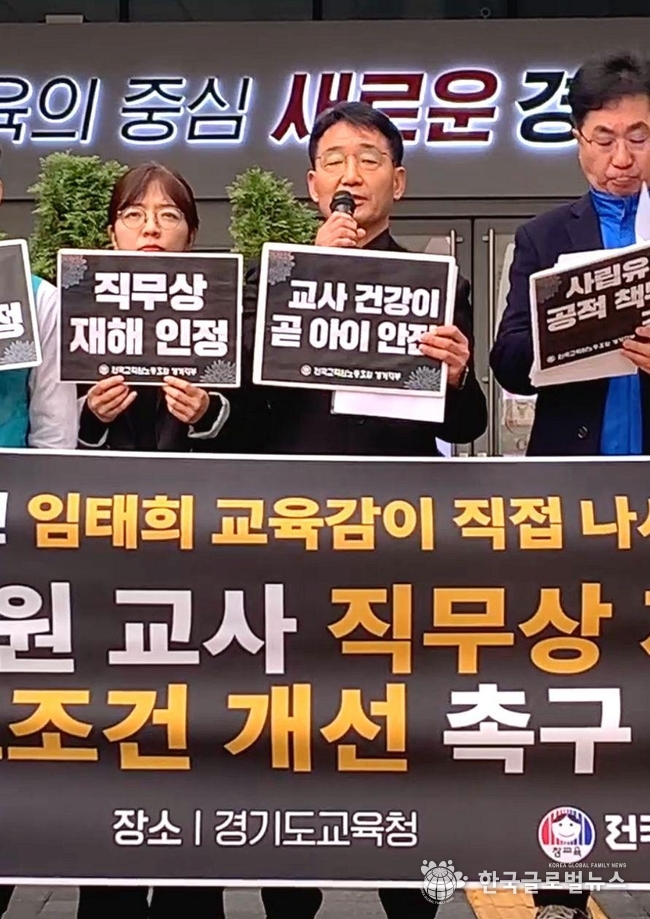 이어 경기도교육청을 향해 ▲사망 교사 직무상 재해 인정 ▲법정 감염병 병가 승인 의무화 ▲현장 인력 지원 대책 마련을 요구했다.