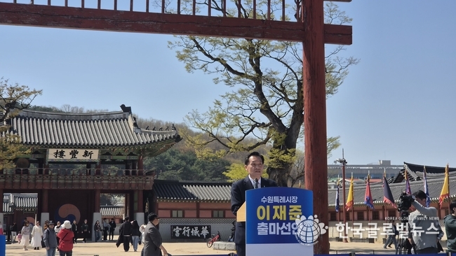 이 시장은 8일 화성행궁 광장에서 출마 선언을 통해 “수원의 위대한 유산을 시민의 ‘먹거리’로 만들겠다”며 ‘글로벌 관광수도 수원’ 비전을 제시했다.