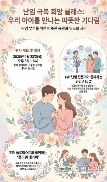 프로그램은 총 2부로 구성된다. 1부에서는 관내 난임 전문의를 초빙해 난임에 대한 전반적인 이해를 돕는 강의를 진행하고, 질의응답 시간을 통해 전문의와 직접 소통하며 궁금증을 해소할 수 있도록 했다. 2부에서는 화초전문가(플로리스트)의 지도로 ‘플라워 테라피’ 프로그램을 운영해 참여자들의 심신 안정과 정서적 회복을 도울 예정이다.