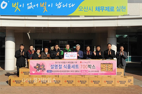 [경기타임스] 오색시장 상인회는 11일 지역 내 어려운 이웃을 위해 불우이웃돕기 2,000만원 상당의 물품을 오산시에 기탁했다.
