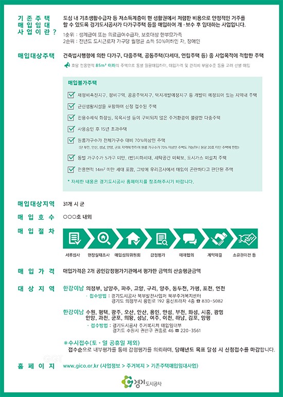 [경기타임스] 경기도시공사가 도내 31개 시·군 다가구·다세대·연립 등 공동주택 중 전용면적이 85㎡ 이하인 주택 240호를 매입한다.
