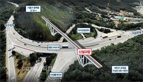 연결다리는 영동고속도로 마성IC 인근 상부에 처인구 포곡읍 마성리 581-7~기흥구 동백동 산15-1구간을 잇는 길이 168m 폭 3m규모로 건설된다.