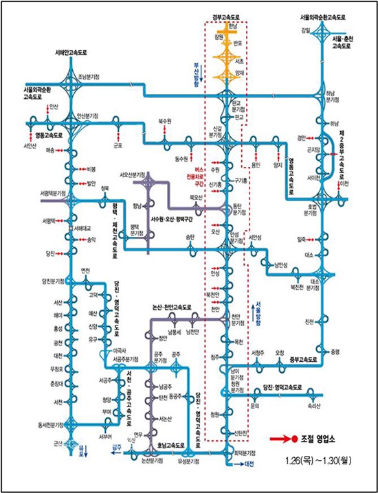 경찰은 경부·영동·서해안 등 3개 고속도로 노선의 16개 요금소에 소통량을 지켜보다가 혼잡이 이어질 경우 수원, 매송, 서안산 톨게이트 진.출입차량을 조절, 차량 흐름을 원활하게 유도할 계획이다.