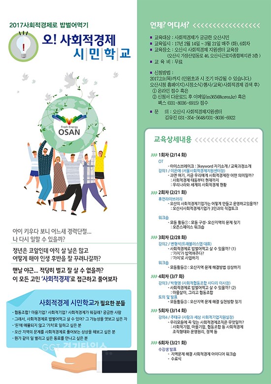 [경기타임스] 오산시가'오! 사회적경제 시민학교’의 수강생을 모집한다고 25일 밝혔다.