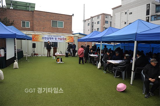 [경기타임스] 오산시는 지난 4일 12시 오산동 소재의 성산시립경로당 게이트볼장에서 곽상욱 오산시장, 남촌마을 주민 등 140여명이 참석 남촌마을 맞춤형정비사업 정비계획(안) 주민설명회를 가졌다.