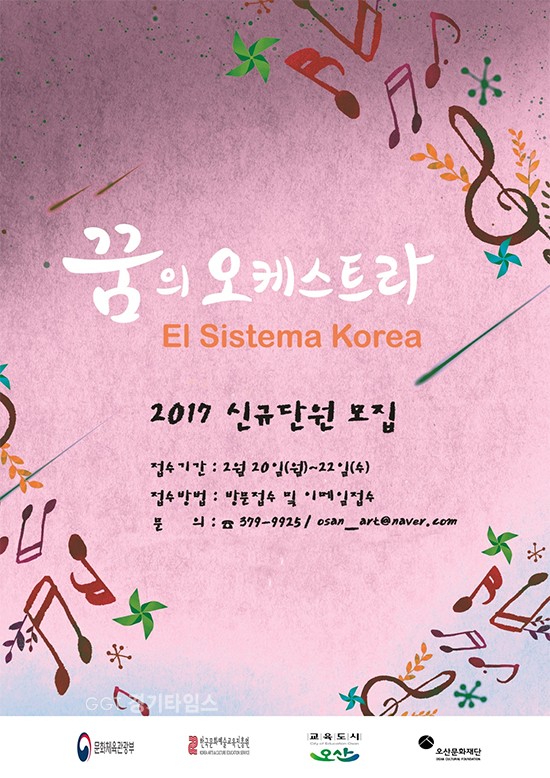 [경기타임스] (재)오산문화재단은 올해 꿈의 오케스트라‘오산’의 신규단원을 모집한다고 밝혔다.