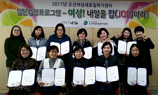 [경기타임스] 오산시여성새로일하기센터는 집단상담프로그램 “여성, 내일을 잡(JOB)아라!” 1기를 운영하고 12명의 수료식을 진행했다고 밝혔다.