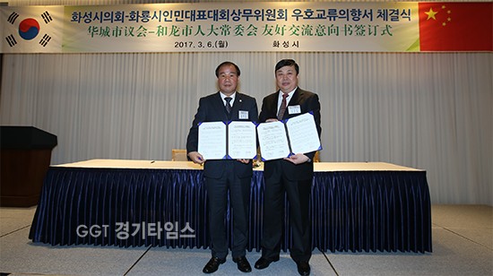 [경기타임스] 화성시의회와 중국 화룡시 인민대표대회상무위원회는 우호교류의향서 체결식을 6일 푸르미르 호텔에서 개최했다.