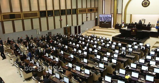 도의회는 14일 제317회 임시회 1차 본회의를 열어 '경기도의회 교섭단체 및 위원회 구성 운영 조례 일부개정조례안 재의요구안'을 재석 의원 81명에 찬성 65명, 반대 11명, 기권 5명으로 재의결했다.