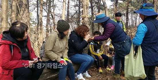 화성 명산 숲 해설은 봄나들이를 나온 가족들과 등산객 등 시민 15명이 참여해 ‘산에 사는 야생동물’을 주제로 야생동물 흔적 찾기와 숲 놀이, 산에게 보내는 편지 등 다양한 체험이 진행됐다.