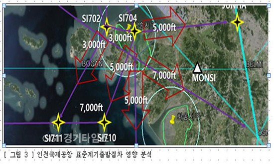 보고서는 화성호 상공에 대해 인천국제공항 16개, 오산공군기지 2개와 입출항 경로가 중첩 또는 근접해 군의 작전, 관제, 안전에 취약하다고 분석했다.