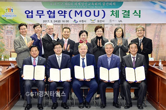 [경기타임스] 수원시와 오산시는‘제6차 세계성인교육회의 중간회의 성공적인 개최를 위한 업무협약’을 체결했다.