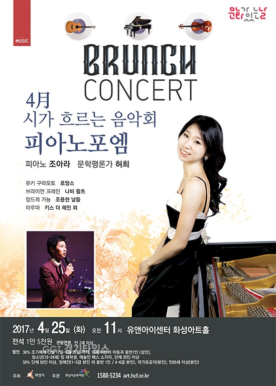 [경기타임스] 화성시문화재단은 4월‘브런치 콘서트’와 ‘조윤범의 파워클래식’공연 프로그램을 공개했다.