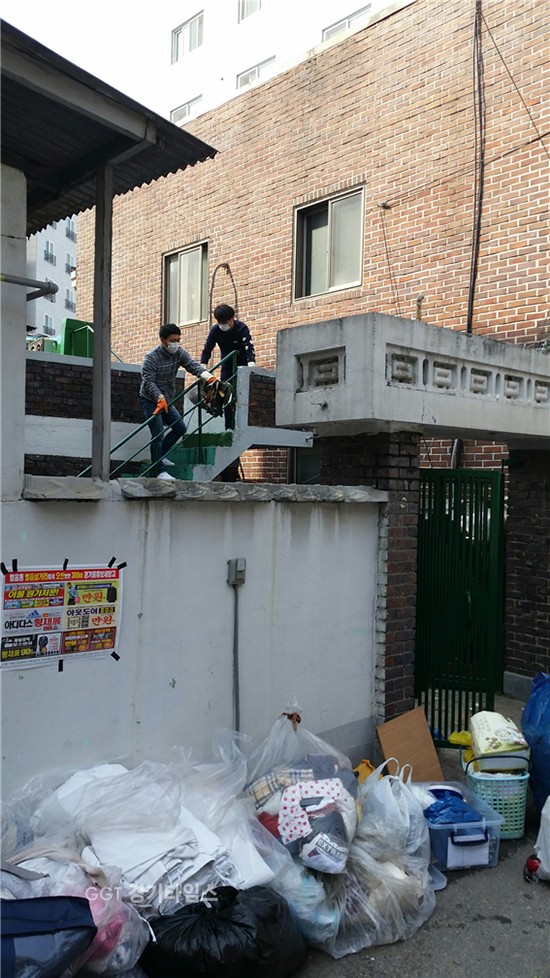 무한돌봄센터와 LG이노텍 자원봉사단은 대원동에 거주하고 있는 A 가구는 호더스(저장강박증) 무한크리미 지원 서비스를 제공하여 청결하고 안전한 주거환경조성 지원했다.