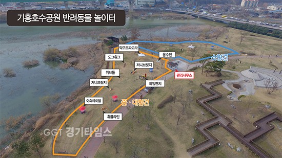 [경기타임스] 용인 기흥호수공원에 국내 최대 규모의 반려동물 놀이터가 들어섰다.