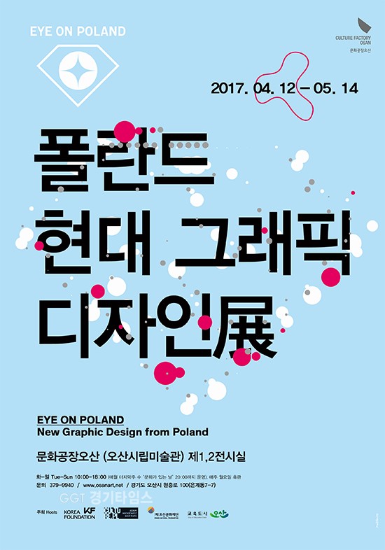 [경기타임스] 오산문화재단 문화공장오산은 12일부터 5월 14일까지 한국국제교류전과 아담 미츠키에비츠문화원과의 공동협력전시로 'Eye on Poland:폴란드 현대그래픽 디자인'展을 개최한다고 11일 밝혔다.