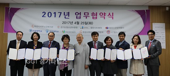 협약식은 동탄시티병원(원장 신재흥), KT팝스시큐리티(대표이사 구희태), 둘로스관광여행사(대표이사 우재도), 신경대학교(총장직무대행 이서진), 장안대학교(총장 우완기), 화성시여성지도자연합회(회장 심현진),화성시 건강가정지원센터(센터장 한은주), 경기도청소년수련원(원장 양철승) 등 8개 기관으로 의료.안전.교통.교육.여성단체⦁복지 등 경기지역에서 활동하고 있는 8개 기관이 참여 하였으며, 협약식에는 대한불교조계종사회복지재단을 대표하여 성화스님(장안사 주지)이 참석했다.